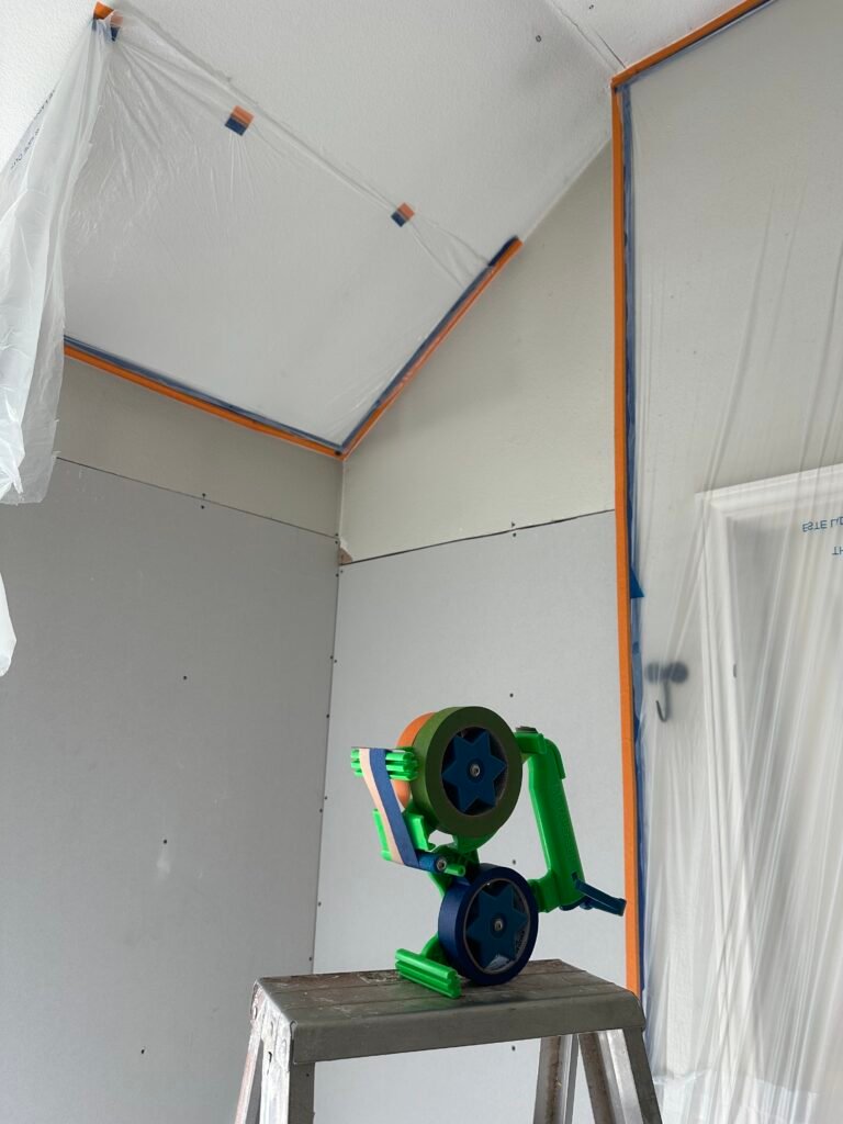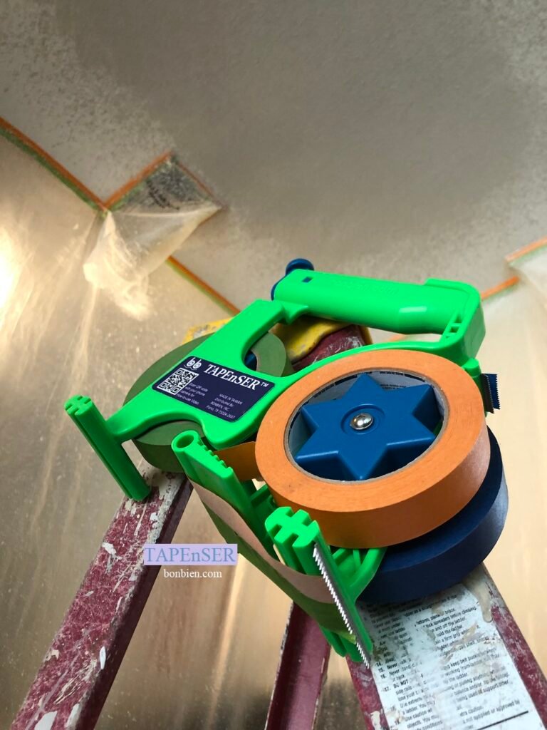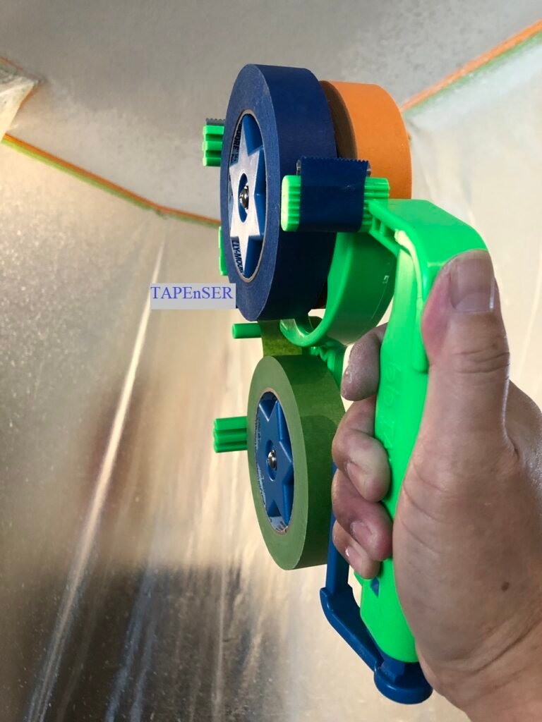 When prep work is done properly to cover or seal off areas before spraying paint, stain, or texture… You will be confident to do the job efficiently! Even when you use the masking film with one edge pre-taped, you still need TAPEnSER to tape both side edges and the bottom edge. Save a lot of your time! Very easy to use!